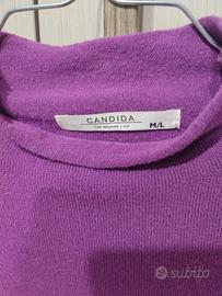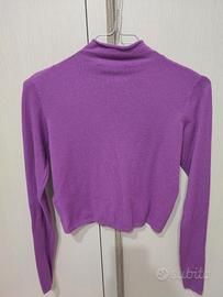 Maglioncino dolcevita crop viola/fuxia con collo alto e maniche lunghe.