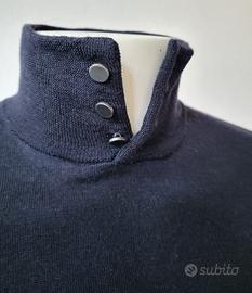 Dolcevita con bottoni automatici in metallo di Emporio Armani lana bicolore blu e grigio in misura L. Emporio Armani originale.