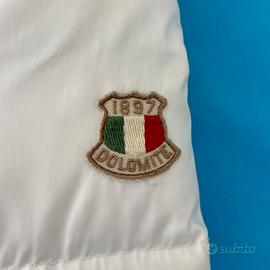 🇮🇹 Dolomite piumino da donna in colore bianco con interno marrone, chiusura centrale con zip e bottoni, due tasche laterali con apertura a cerniera, cappuccio con pelo rimovibile, esterno 100% poliestere / fodera 100% poliestere / imbottitura 80% piumino 20% piumetta; perfette condizioni. Le istruzioni di lavaggio sono riportate nell’etichetta interna.