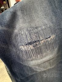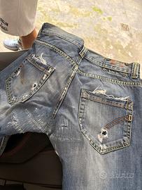 Jeans usati poco Dondup molto belli usati due volte forse.Gli strappi chiaramente sono proprio il modello fatto così non modificati dall’ usura,Anzi costano anche più del normale.Pagati 250€…ho tre modelli diversi che non mi vanno più.Taglia 32 uomo