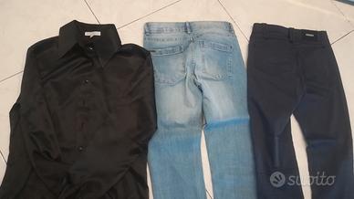 Un jeans taglia 38, una camicia originale NARACAMICIE nera di raso e un pantalone blu elegante originale GUESS taglia 38