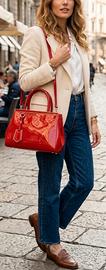 Elegante borsa 2-in-1 color rosso brillante con finitura lucida. Design strutturato e versatile, ideale sia per look formali che casual.