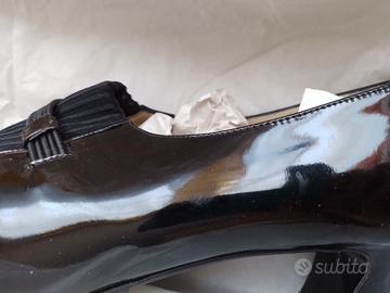 Donna Serena calzature moda comfort modello "Licia" scarpe slip on n.39,5 Made in Italy; tomaia, fodera e sottopiede in vera pelle, suola in vero cuoio e gomma antiscivolo, fascia elastica sul collo del piede, tacco largo comodo alto cm 5.