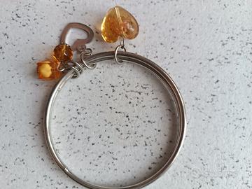 Due bellissimi braccialetti uniti con dettagli argentati e charms giallo ambrato a forma di cuore e altro. Sono due braccialetti, perfetti per aggiungere un tocco di stile al tuo look! - Realizzati con materiali di buona fattura. - I charms sono color ambra e argento. - Ideali come regalo o per impreziosire il tuo look in modo curato!