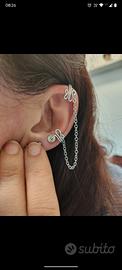 Doppio ear cuff (orecchino senza necessità di foro) in filo di alluminio con catenella in acciaio inossidabile... fatto a mano... adattabile all'orecchio... carino fine leggero sottile e delicato.