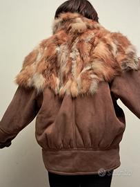 Il taglio è quello iconico: forte, deciso, senza compromessi. La pelle nera è morbida, materica, profonda. Si vede subito che è di un’altra epoca, quando la qualità non era un’opzione ma una certezza. Il collo e i polsi sono avvolti in una lussureggiante volpe argentata, soffice e luminosa, un dettaglio che non si può imitare, una firma di lusso autentico. I bottoni ricoperti sono un segreto da intenditori, quel dettaglio che fa la differenza tra un semplice cappotto e un’opera d’arte sartoriale.