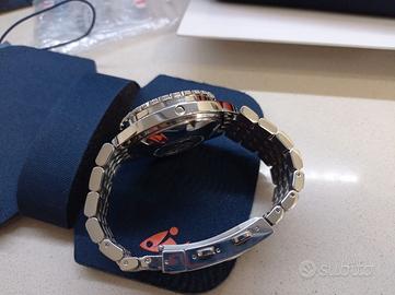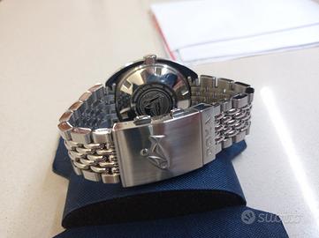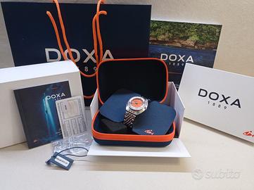 DOXA SUB 300T PROFESSIONAL Iconico diver, primo della storia con valvola espulsione dell'elio, in ottime condizioni e perfettamente funzionante. Movimento ETA 2824-2 ormai fuori produzione. Completo di tutto il corredo compreso di scatola, contro scatola, box in tessuto tecnico, garanzia Grimoldi 05/2021, busta di trasporto DOXA del concessionario ufficiale e catalogo 2024/2025. 5 maglie aggiuntive più mezza maglia già montata sul bracciale, acquistata separatamente(valore 40€) per adattarsi perfettamente al polso. Massima serietà. Prezzo non trattabile, pagamento bonifico bancario o PayPal(commissioni a carico dell'acquirente), spedizione a parte con corriere espresso 24h o ritiro di persona in Lazio e Abruzzo