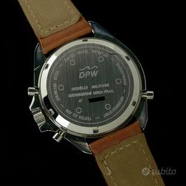 Marca: DPW Modello: fatto per Gilardini Referenza: Anno: Condizioni: buone Documenti: scatola, garanzia in bianco e libretto d'istruzioni Carica: Cassa: acciaio Diametro: 40 mm esclusa corona Colore Quadrante: blu Cinturino: originale in pelle logato Art: 01036 SR PER VISIONARE L'OROLOGIO E' RICHIESTO L'APPUNTAMENTO IN NEGOZIO Quest’orologio rappresenta una versione particolare molto rara, provvisto di doppio cinturino in caucciù originale DPW. Possibilità d' acquisto di spernatore per la sua sostituzione del cinturino. Laboratorio Orologeria Duomo è operativo su internet. Vende, compra, ripara e permuta orologi; effettua sostituzione immediata di pile e cinturini. Ritira intere collezioni. Audemars Piguet _ Rolex _ Patek Philippe _ Vacheron et Constantin _ Omega _ Tudor _ Longines _ Zenith.