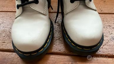 stivali Dr. Martens modello 1460 di colore bianco. Sono un modello iconico, noto per la sua robusta pelle liscia (spesso "Smooth" o