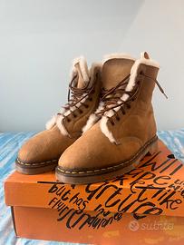 Classico modello Dr. Martens 1460 (Otto occhielli) scamosciati con interno di pelo sintetico.