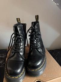 Pelle lucida, cuciture gialle, cerniera nel lato interno