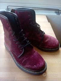 Stivaletti originali. numero 36 in velluto rosso viola, una con un segno.