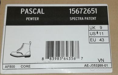 Vendo DR MARTENS modello PASCAL PEWTER colore GRIGIO ARGENTO effetto METALLIZZATO numero 43 fori 8 PRODOTTO ORIGINALE NUOVE CON SCATOLA E ETICHETTA