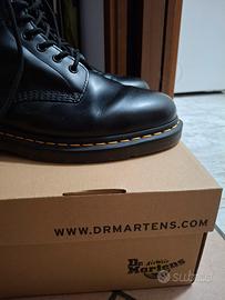 Vendo anfibi Dr.Martens originali neri tg.44 per totale inutilizzo. Comprati per sfizio e pagati 189 euro(non vanno mai in sconto i neri) presso nota boutique di abbigliamento in centro a Modena ma mai usati perche ho altri 2 stivaletti neri che uso di piu(guarda la para di gomma e le suole e il colore della pelle....le pieghe purtroppo vengono appena li indossi e fai due passi in casa).Non fate offerte al ribasso per favore:sono introvabili a questo prezzo e in queste condizioni.consegna a Modena e zone limitrofe. spedizione con MBE e aggiunta di 15 euro.