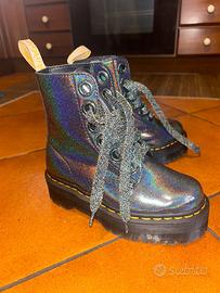 Vendo dr Martens argento brillante con stringa accessorio usati una sola volta. Platform alto, morbidi