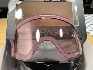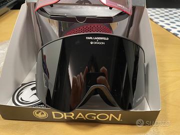 Maschera da snowboard e sci della Dragon modello NFX2 edizione limitata Karl Lagerfeld con due lenti. Modello di punta della Dragon Compreso scatola originale, astuccio, adesivi ecc… come nuova