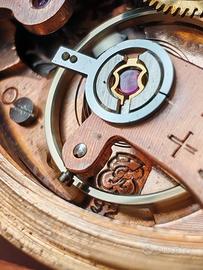 Movimento: Il punto forte di questo orologio. Monta il rinomato calibro a carica manuale Valjoux 92 (17 rubini), un movimento cronografico di alta qualità con smistamento delle funzioni tramite ruota a colonne , molto apprezzato dai collezionisti. È dotato di sistema antiurto Incabloc.