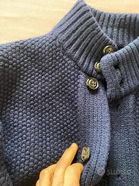Giacca blu , aperta davanti, collo alto, prestigiosa marca Drumohr , mano tessuto compatto, piuttosto pesante, blu scuro, per ragazzo/ uomo piuttosto magro , taglia da verificare