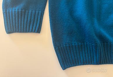 Maglione di lana 100% merino di colore blu, indossata ma sembra quasi nuova, altissima qualità. Taglia 52, veste poco quindi la considererei una 50. Davvero bello. Vendo perché non mi va piu (e non per colpa sua🤣)!