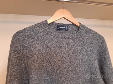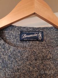 Maglione girocollo grigio screziato della marca Drumohr, uno storico marchio di maglieria scozzese fondato nel 1770 a Dumfries. Il tessuto è composto per il70% da lana e per il 30% da cashmere, come indicato sull'etichetta. Presenta una piccola cucitura perfetta e impercettibile come da foto numero 5. Taglia XL ma vestibilità ridotta a M.