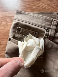 Pantalone dsquared 2 dsquared2 taglia 48 vendo a basso prezzo per la presenza di alcuni difetti tasche bucate all’interno pezzo tasca posteriore mancante vedere le foto.