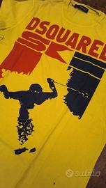 Dsquared2 T-Shirt Uomo Tg. M veste anche L Gialla con scritta SKY Made in Italy Vintage Authentic Rara