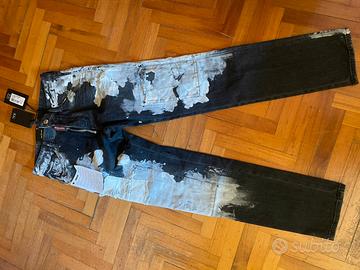 Jeans nuovo con etichetta . Mai indossati tg 42. Neri con macchie bianche grigiastre( vedi foto).