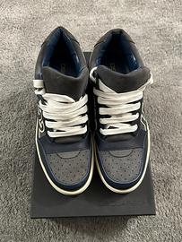 * Design: Pelle scamosciata blu navy e grigio, con dettagli in pelle bianca e maxi logo "D2" laterale.