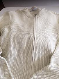 Due cardigan donna con doppia cerniera , 1) cardigan realizzato in morbida lana colore rosa maniche lunghe. Lunghezza totake cm.59 lunghezza manica cm.54 larghezza spalle cm.40. Condizioni Usato ma in buono stato 2)cardigan realizzato in cotone colore panna maniche lunghe cerniera doppia. Tag. 44 Lunghezza totale cn.62 lunghezza manica cm.57 , larghezza spalle cm.40. Buono stato