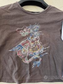 1 maglietta grigia con dragone marca Bershka taglia M 1 maglietta tshirt top corto taglia S Suite Benedict Acquistabili singolarmente a 3€