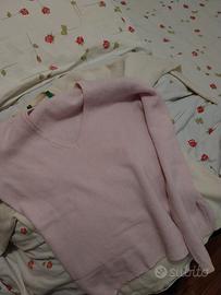 Due maglioncini 100% lana. Scollo a V. Benetton. Taglia M. Molto usati lana si è leggermente ristretta. Presentano entrambi un alone davanti a sx sotto lo scollo a V che ho cercato di fotografare. Prezzo complessivo per entrambi