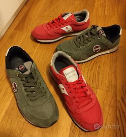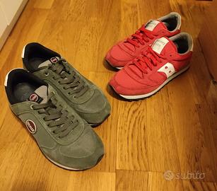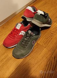 Scarpe Saucony jazz 42 rossa e Colmar 42 verde, entrambe in tela e camoscio . In buone condizioni con qualche difetto come da foto .