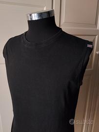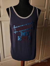 Due t-shirt uomo tg M misure: spalle 44, torace 100, lunghezza 63. Una nera marca Nath a giro collo e l'altra blu con applicazioni a canottiera. In ottimo cotone e in perfetto stato. Vendo insieme a 3 euro.