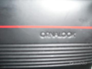 valigetta in plastica rigida nera, portacarte o portaoggetti ,con chiusura a scatto e manico rigido ,marca"ORNALOOK", larga cm 39, alta cm 28 e profonda cm 7.