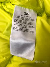 Nylon superlight con finissaggio super lucido; la semitrasparenza del tessuto unita al contrasto con il bianco del sacco piuma rendono nuances e sfumature inedite. Tessuto water-resistant e wind-proof. L’imbottitura in piuma garantisce leggerezza, un elevato comfort termico e protezione dagli agenti atmosferici.