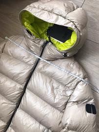 Piumino packable in nylon superlight semi-trasparente con finissaggio super lucido. Chiusura frontale con zip doppio cursore e sottozip in neoprene con logo a rilievo all’interno. Cappuccio regolabile con coulisse, coulisse al fondo e tasche laterali con zip. Polsino regolabile con elastico nascosto e laccio con automatici. Il capo, caratterizzato dal colore di contrasto utilizzato per tutto il suo interno, è ripiegabile nella tasca interna con zip trasformandosi in sacca con tracolla.