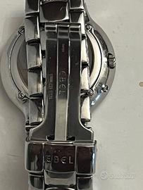 Splendido Ebel Lichine Automatic, 37 mm, Water Resistance: 30 m (100 piedi). Raro esemplare con data, piccoli secondi e indicazione della riserva di carica (40 ore). Cassa e bracciale in acciaio. Condizioni strepitose, senza graffi o segni visibili rilevabili al tatto. Full set: custodia in pelle, contro scatola e garanzia ufficiale dell'epoca. Revisionato a febbraio 2026