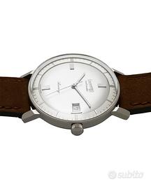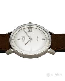 Eberhard acering automatic date steel 34 mm; Peso: 41.48gr; Misura: 15/20 ; Materiale: Acciaio; Anno: 1960 (circa); Corredo: Scatola e Garanzia del rivenditore; Referenza: I 26008 ; Carica: Automatico; Calibro: 266-123b; Rubini: 25; Colore quadrante: Argento; Corona: Acciaio; Diametro cassa: 34mm; Ghiera: Acciaio Materiale cassa: Acciaio; Materiale cinturino: Pelle; Vetro: Plastica Cod: 7285-a