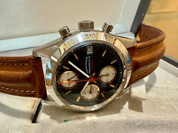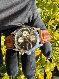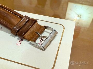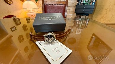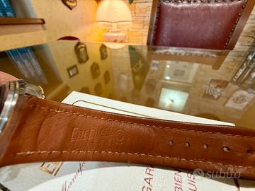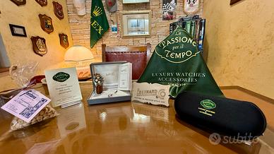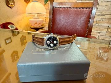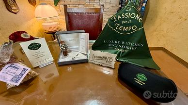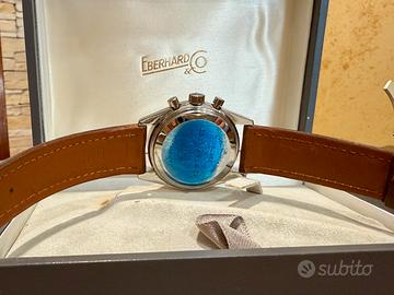 NUOVO ARRIVO Pari a un Fondo di Magazzino Anno 1993 Full Set Orologio Eberhard & Co. Mod. Champion (Ref. 31022 CP) cronografo meccanico a carica automatica prodotto principalmente negli anni '90. È un modello molto apprezzato dagli appassionati per il suo equilibrio tra stile sportivo e raffinatezza tecnica, appartenente alla prima serie della collezione Champion. Caratteristiche Tecniche Movimento: Equipaggiato con il celebre calibro Lemania 5100, noto per la sua robustezza e per la configurazione con minuti e secondi cronografici centrali e indicazione delle 24 ore al 12. Cassa: Realizzata in acciaio con finitura lucida. Il diametro standard è di 38 mm. e lo spessore è di circa 15 mm. Vetro: Vetro acrilico bombato (plexiglas), tipico degli orologi di quel periodo. Quadrante: Nero con contatori bianchi o completamente bianco, arricchito da grafiche dorate sulla lunetta fissa con scala tachimetrica. Lunetta: Fissa con scala tachimetrica incisa. Corona e Fondello: La corona è serrata a vite per una maggiore protezione; il fondello ancora con cera blu. Cinturino: Originale dellepoca in pelle marrone, con fibbia marchiata. Condizioni pari a un fondo di Magazzino Completo di Scatola Originale dall’epoca. Garanzia Italiana 1993 Garanzia del Nostro Negozio Panno in Microfibra Watch box Zip Nocciolini di Chivasso ✅ Primo Prezzo € 1.850 ✅ Prezzo Scontato € 1.600 🛍Pronta consegna 📄 12 Mesi di Garanzia 💶 🏦 💳 Pagamento 🇪🇺 Spedizione in tutta Europa 🚚 Portavalori Assicurato 📱whatsapp 💻lapassioneperiltempo.com 🗓Si riceve su Appuntamento 📍 Sede Principale La Passione per il Tempo Via Torino n* 86 Chivasso (TO) ✅ Su Appuntamento per Acquisti e Vendite 📍Rivarolo Canavese (TO) 📍Ciriè (TO) 📍Albissola Marina (SV)