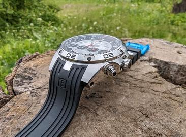 Eberhard & Co. Chrono 4 Géant, cronografo automatico iconico con disposizione a 4 contatori brevettata. Orologio originale, perfettamente funzionante, tenuto con grande cura. Caratteristiche principali: •Movimento automatico •Cronografo Chrono 4 (4 contatori allineati) •Cassa in acciaio di grandi dimensioni (Géant) •Quadrante sportivo ad alta leggibilità •Cinturino in gomma originale Eberhard Condizioni: •Ottime condizioni estetiche •Nessun graffio profondo •Funzionamento regolare