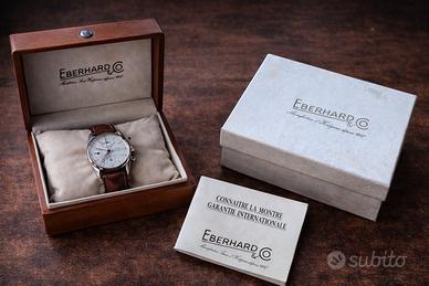 Metto in vendita questo cronografo Eberhard, acquistato nuovo e sempre appartenuto alla mia collezione personale. L'orologio ha "fatto poca strada": è stato indossato raramente e con estrema cura, trascorrendo la maggior parte del tempo in custodia.