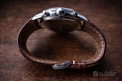 • Cinturino: L'orologio monta un cinturino in pelle marrone con chiusura deployante. Il cinturino è usato e non in buonissimo stato dove ci sono i fori.