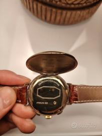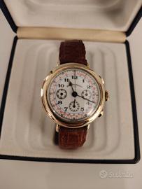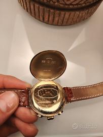 Cassa in argento massiccio 925 con placcatura in oro giallo da 20 micron (Vermeil) orologio indossato pochissimo, creato per omaggiare i suoi cronografi storici degli anni '20 e '30.