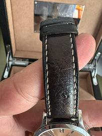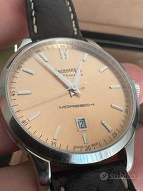 Vendo splendido Eberhard & Co. Extra-Fort realizzato in collaborazione con Moreschi, in edizione limitata a soli 200 esemplari, questo è il n. 005/200. Orologio elegante, raro e da collezione, completo della sua scatola originale in pelle personalizzata, astuccio esterno, e cinturino Moreschi in pelle Made in Italy.