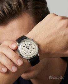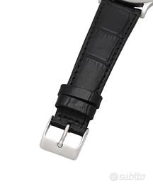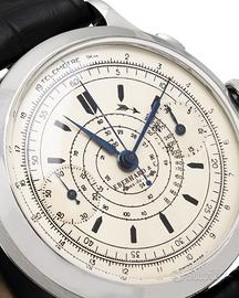 Eberhard & Co. Pre Extra-Fort cal 16000 Jumbo 40 mm from 1940 Peso: 53.6; Misura: da 16 a 20cm; Materiale: Acciaio; Anno: 1940 (circa); Corredo: Garanzia e scatola del rivenditore; Referenza: 24956; Carica: Manuale; Calibro: 16000; Rubini: 17; Colore quadrante: Bianco; Corona: Acciaio; Diametro cassa: 40mm; Ghiera: Acciaio Materiale cassa: Acciaio; Materiale cinturino: Pelle; Vetro: Plexiglass Cod: 7937-a