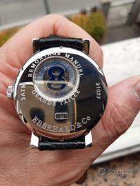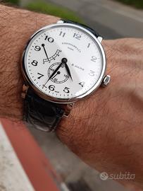 Dichiaro lecita provenienza e originalità del prodotto. Full Set: pari al nuovo. 41mm di diametro, meccanico manuale riserva di carica di 8 giorni vetro zaffiro bombato fondo serrato da 6 viti vetro zaffiro-cinturino in coccodrillo-chiusura déployante. Prezzo non trattabile. No assoluto a permute. Guardate gli altri orologi pubblicati.