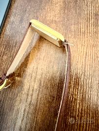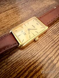 In vendita splendido orologio da polso Eberhard & Co., un classico intramontabile dallo stile "Tank" rettangolare, perfetto come dress watch per occasioni formali o per collezionisti del marchio. Il segnatempo si distingue per la cassa in oro massiccio 18 carati (750) e per la personalizzazione sul quadrante "by OTC", che ne attesta l'esclusività e la provenienza da canali di distribuzione selezionati dell'epoca. Caratteristiche Principali: • Marca: Eberhard & Co. (Swiss Made) • Referenza: 17495 - 5 • Materiale Cassa: Oro Giallo 18k / 750 (punzonato sul fondello) • Forma: Rettangolare "Tank" ultra-piatta • Quadrante: Champagne con indici a bastone neri e logo Eberhard a ore 12 • Vetro: Minerale/Zaffiro in ottime condizioni • Cinturino: Pelle marrone (misura 14mm), condizioni eccellenti • Condizioni: L'orologio è esteticamente molto curato, con lievissimi segni di usura dovuti al tempo che ne aumentano il fascino vintage. Funzionante e preciso. Perché acquistarlo? Oltre al prestigio del marchio Eberhard, questo orologio rappresenta un investimento sicuro grazie alla cassa in oro massiccio. È un pezzo raro da trovare in questa configurazione specifica, ideale per chi cerca un orologio d'oro elegante, sottile e dal design iconico che ricorda i grandi classici dell'orologeria svizzera. Consegna: Disponibile per ritiro a mano o spedizione assicurata con corriere espresso. Massima serietà offerta e richiesta.
