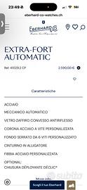 Eberhard e co extrafort 40 mm in ottimo stato con scatolo e libretto originale d’ellepoca Prezzo ribassato 1050 Accetto e valuto scambi con rolex o auto d’epoca cabrio o turbo anche con differenza data con altri orologi che ho in vendita (sul mio privato annunci subito.it) a favore di chi mi propone per compensare il valore in equo modo