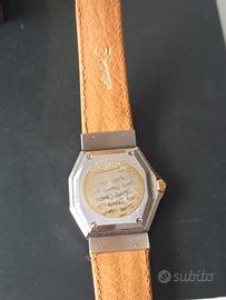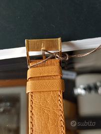 orologio Eberhard laminato, solo orologio, con cinturino e fibia originali, quadrante giallo con data , serie Royal Quartz, cassa con scritta, diametro cassa 31 senza corona.