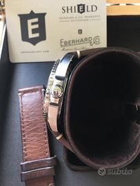 Vendo Eberhard Scafograf 300 dial nero,completo di tutto originale in tutto,cinturino cuoio originale più altro artigianale più uno in tessuto tecnico color liquirizia ,bellissimo usato poco e con cura,scambio solo con orologio di mio interesse,questo modello di Maggio 2021 è animato da un pregevole Eta 2824-2 elaborato e personalizzato da Eberhard e non un Sellita come i successivi,visibile di persona e quindi distante dal mio domicilio non più di 50/100 km